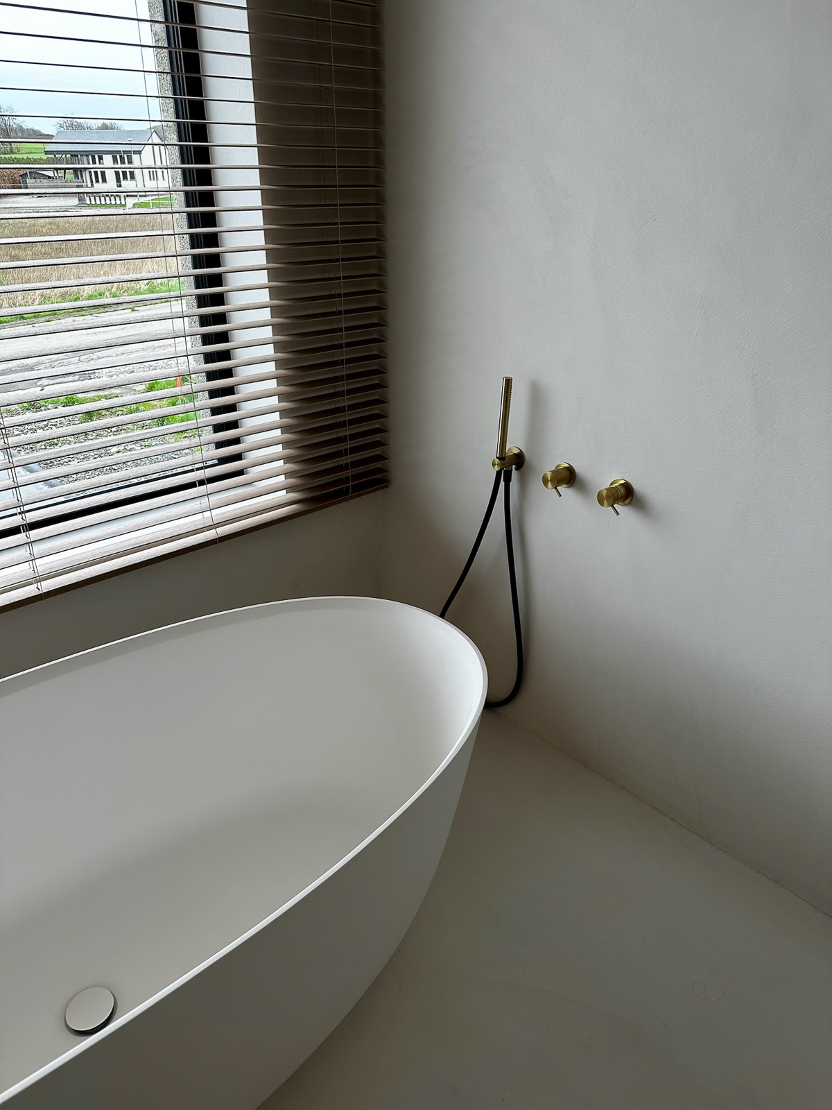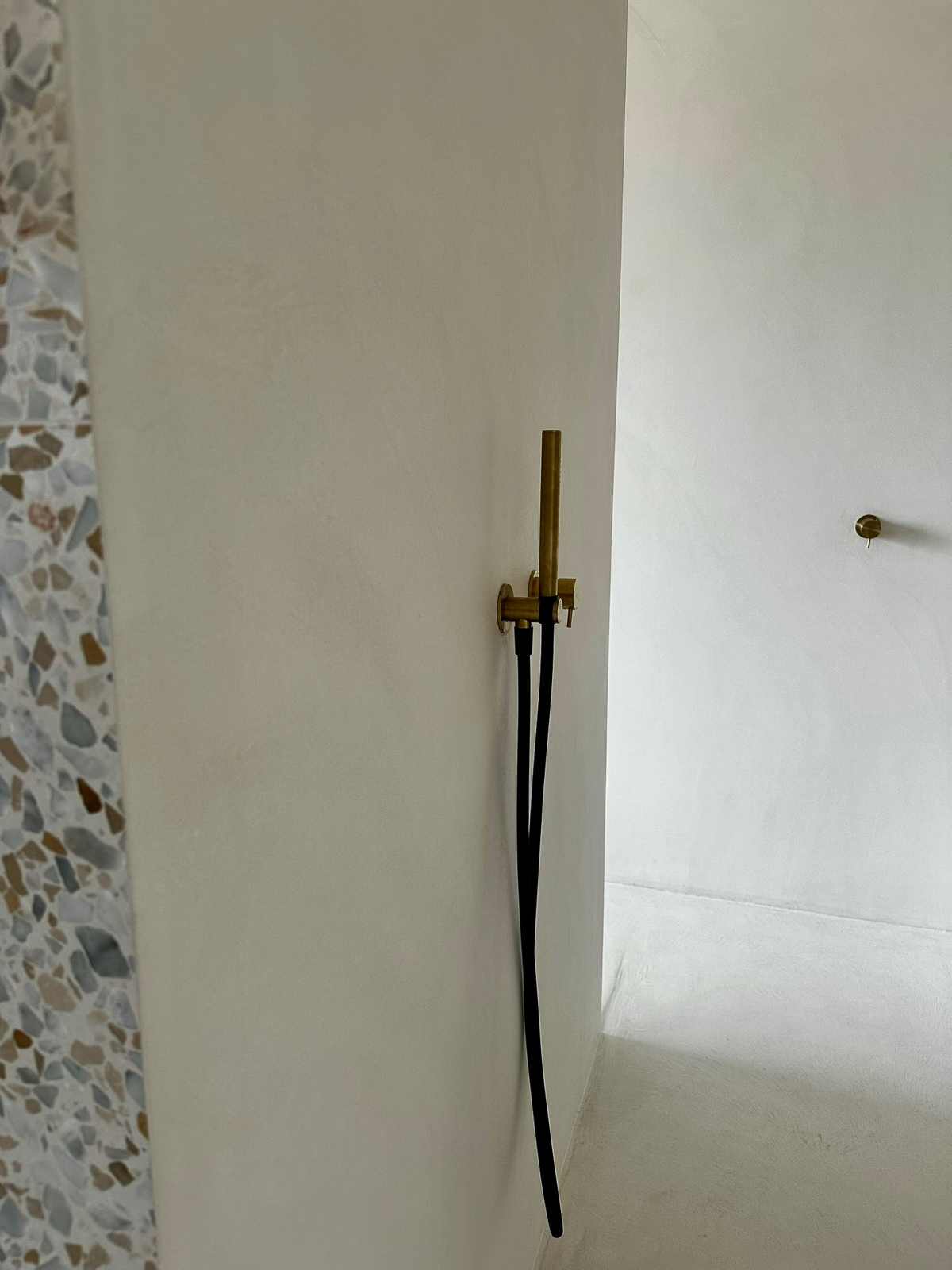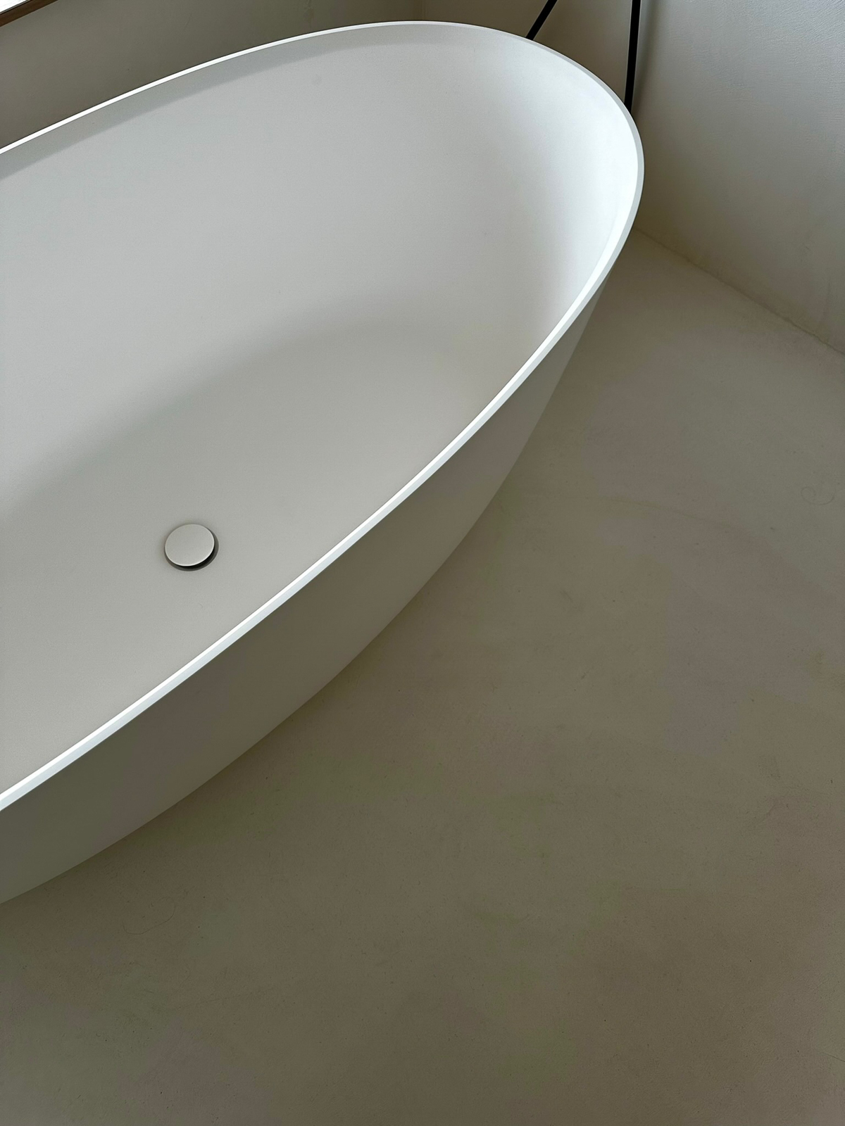 À Blanche Oreille, nous avons conçu une salle de bain en béton ciré, offrant un rendu moderne et épuré. Ce matériau apporte une finition lisse et élégante, idéale pour les espaces détente.