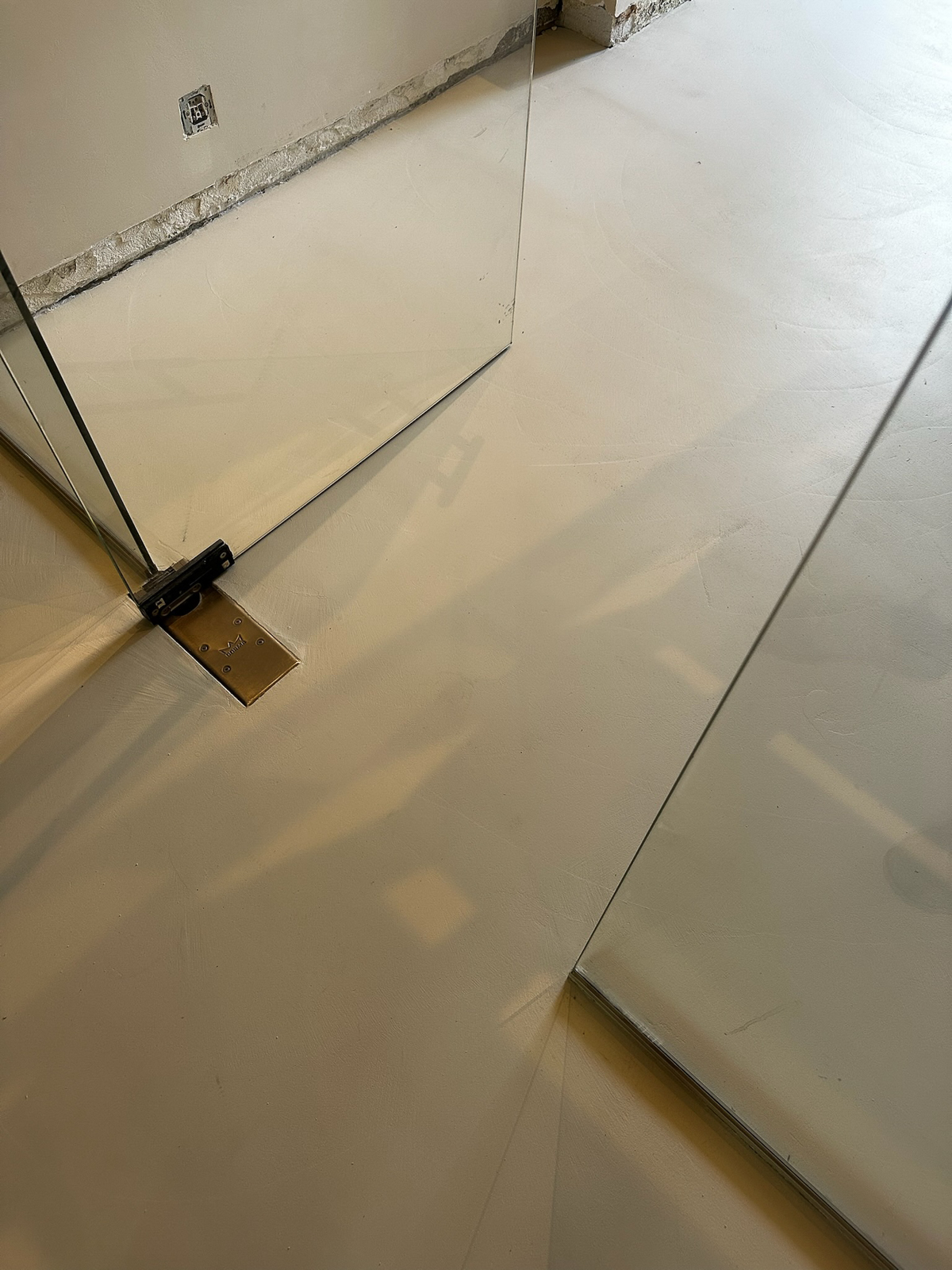 En complément, la douce a été habillée de murs en béton ciré, offrant une solution étanche, esthétique et durable, parfaitement adaptée aux pièces d’eau. Ce projet combine harmonie et praticité du sol aux parois.