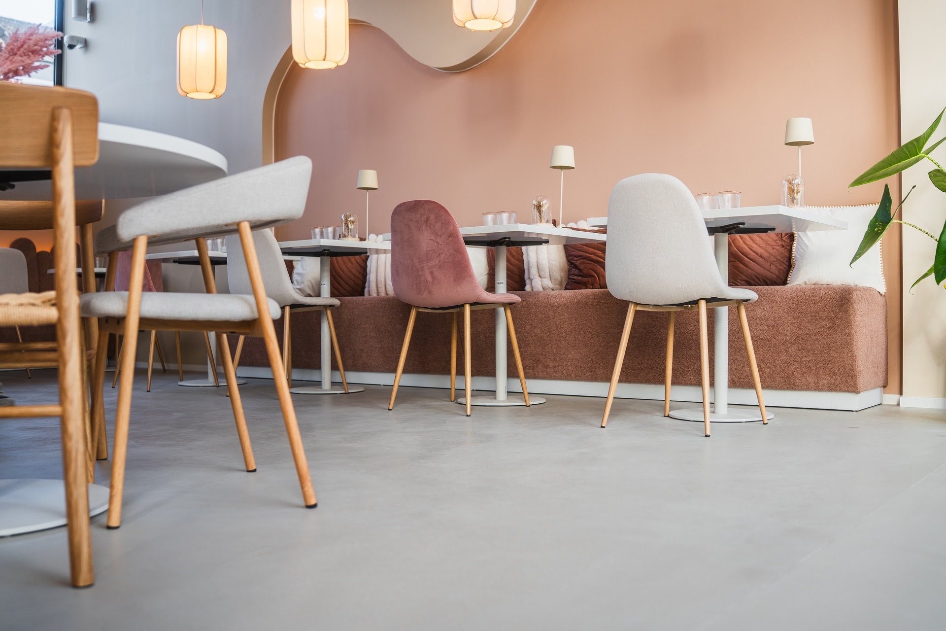 Au restaurant Amore Trattoria à Walhain, nous avons appliqué 90 m² de béton ciré SOLIDRO, un microciment hybride nouvelle génération. Composé à base d’acrylate, le SOLIDRO offre une résistance exceptionnelle aux taches, aux chocs et à l’usure, tout en conservant l’esthétique chaleureuse du béton ciré traditionnel.